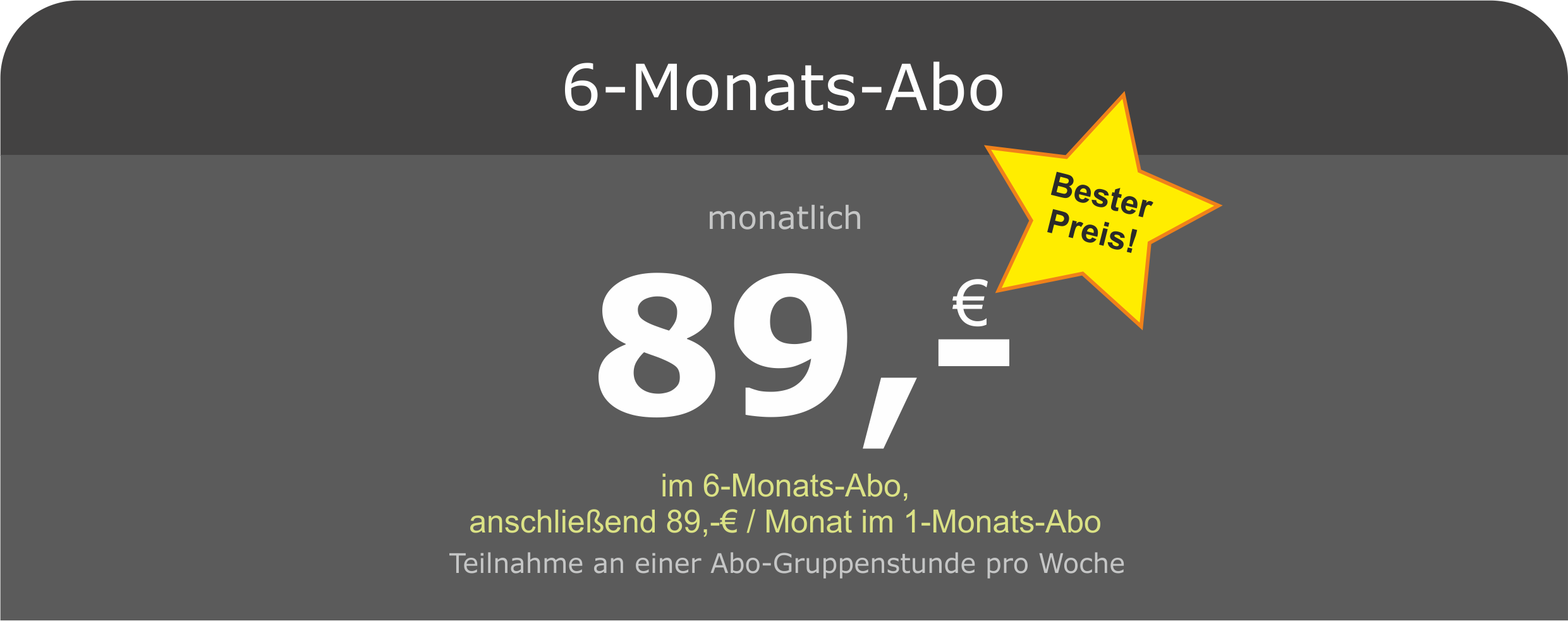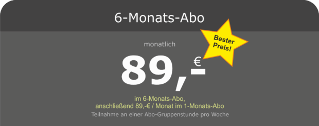 Der Einstieg in einen ABO-Kurs ist immer zum 1. oder zum 15. des Monats möglich.